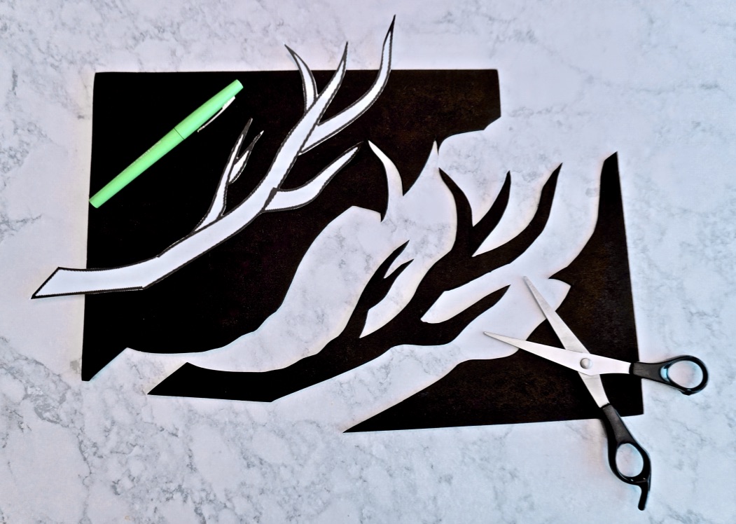 Rather than merely printing your design on paper, make a more everlasting embellishment by going one step further, and trace it onto sheets of black craft foam.