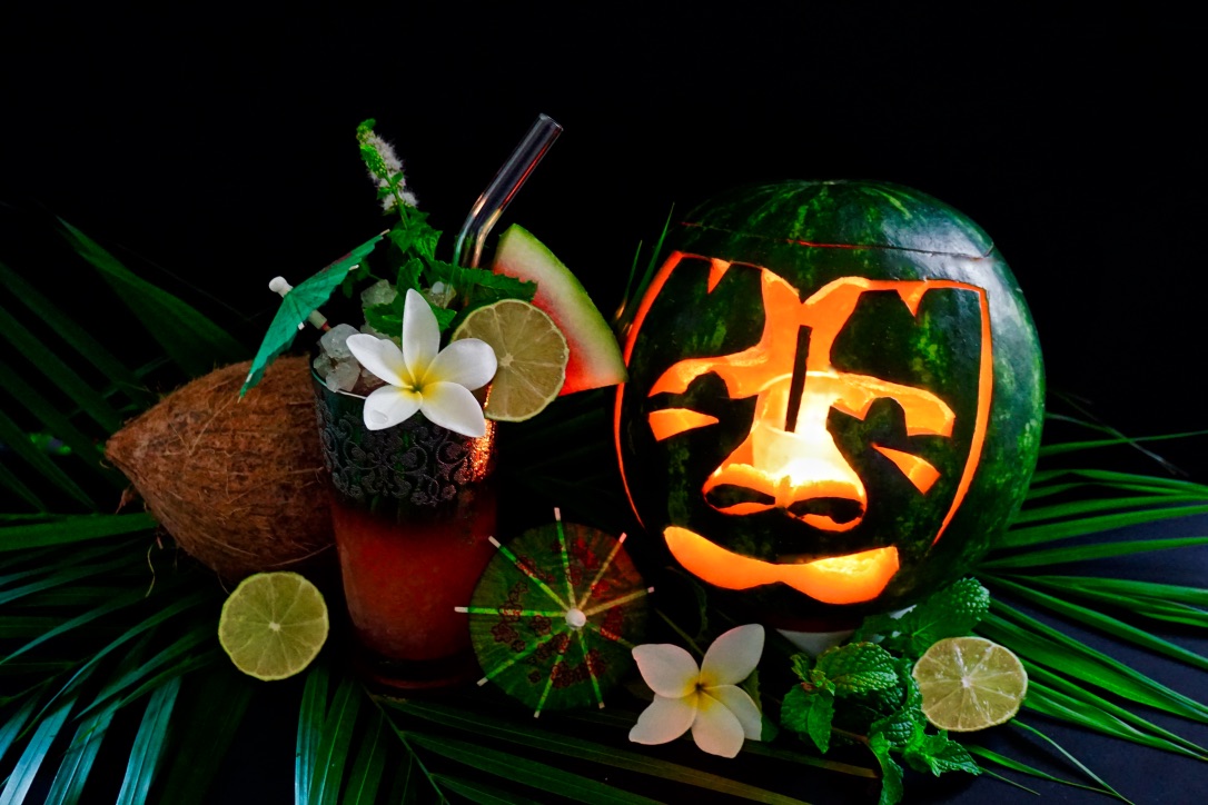 Anyone who knows me, knows that I love a good theme–and a good drink. And, when I can have both, I’m in paradise — but a spooky one, of course! Tiki is exactly that: a tropical paradise with a hint of spookiness! The colors, the mysterious, lush jungle, the haunting call of birds, the masks and totems, and all the fun!