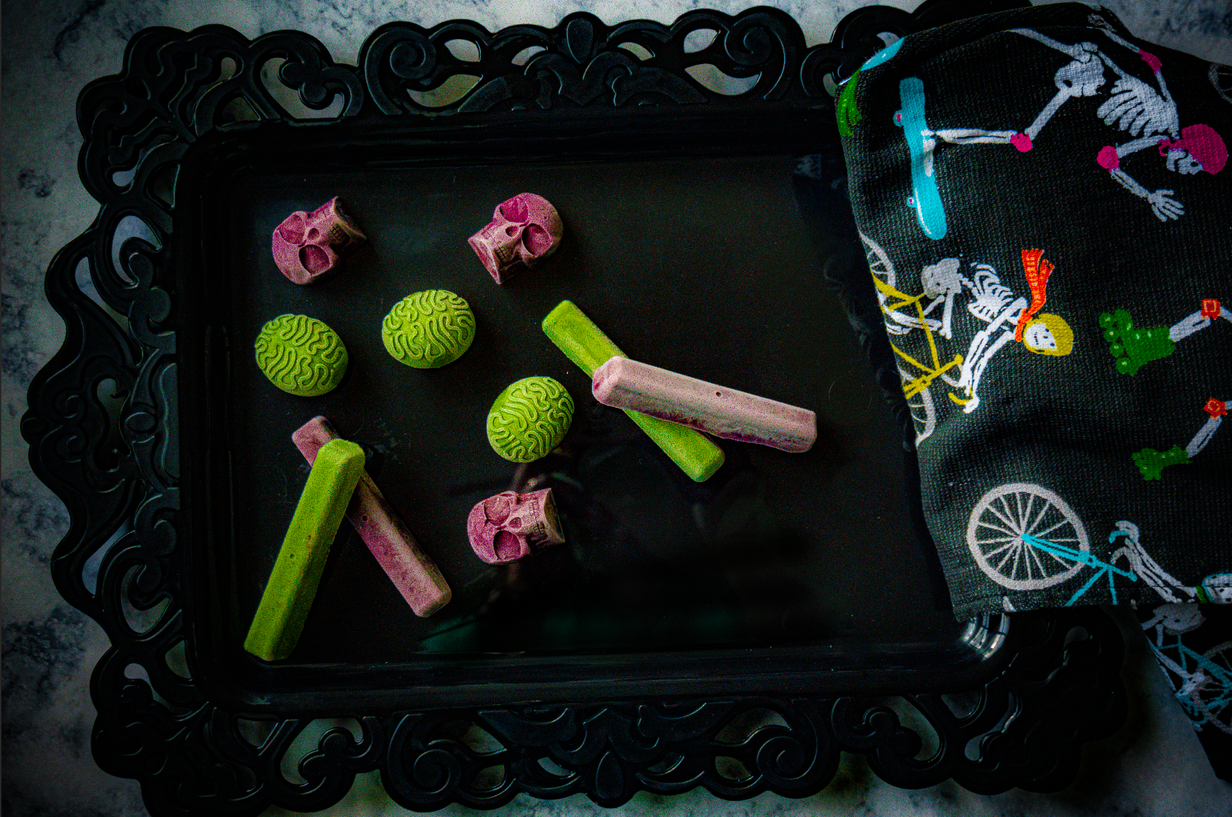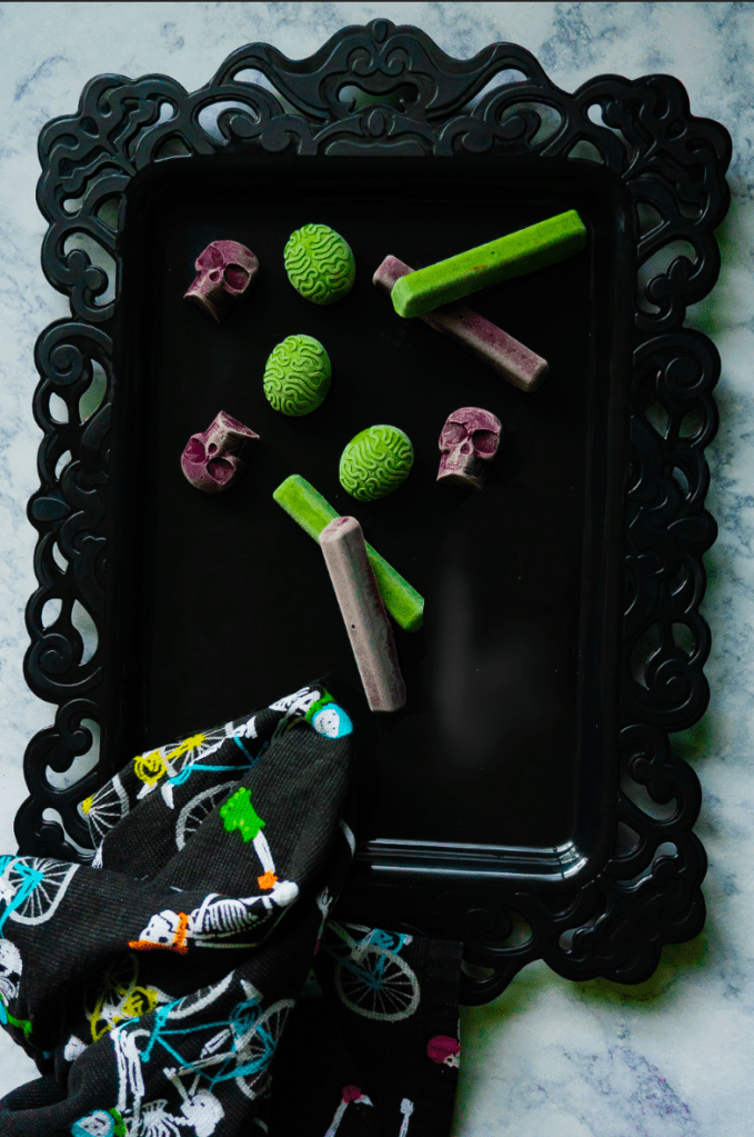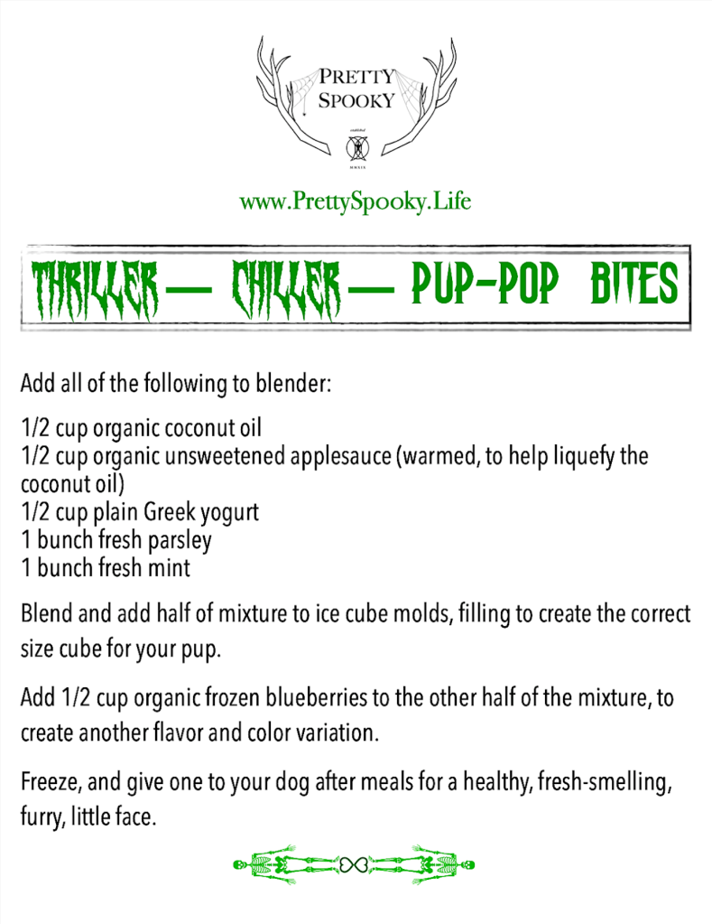 We like to keep a few mason jars of these ghoulish goodies in our freezer for Barley’s after-meal palette-cleanser.