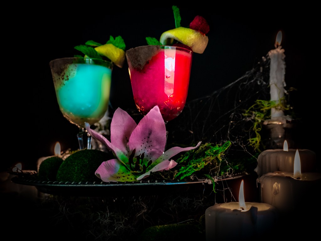 Inspired by my favorite TV couple, and straight from Grandpa’s dungeon laboratory, these spooky sippers are perfect for lingering in the parlor on any lovely, stormy afternoon.