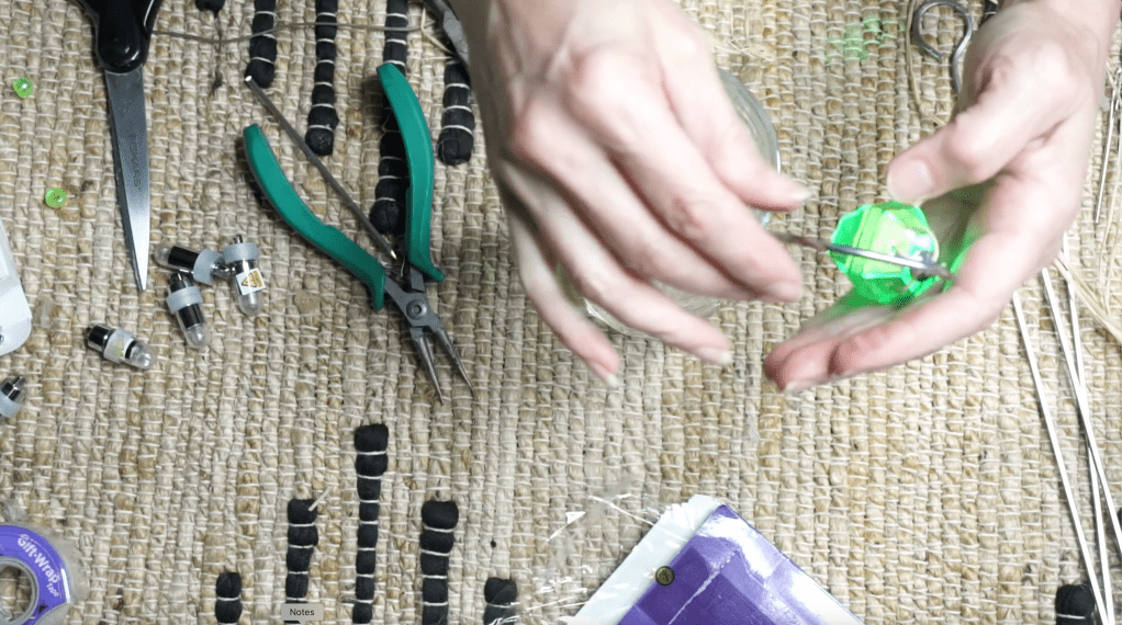 Place a jump ring, from the jewelry supply section of your craft store, in the center of the balloon LED. This will allow you to remove the lamp when it’s time to wash the swizzle.
